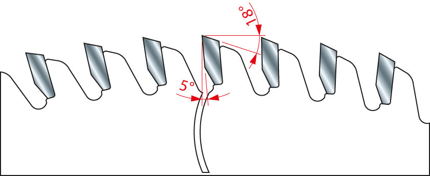 - Double Triple Chip Grind (DTCG) tooth geometry ensures a superior finish and extends blade life when cutting solid surfaces.