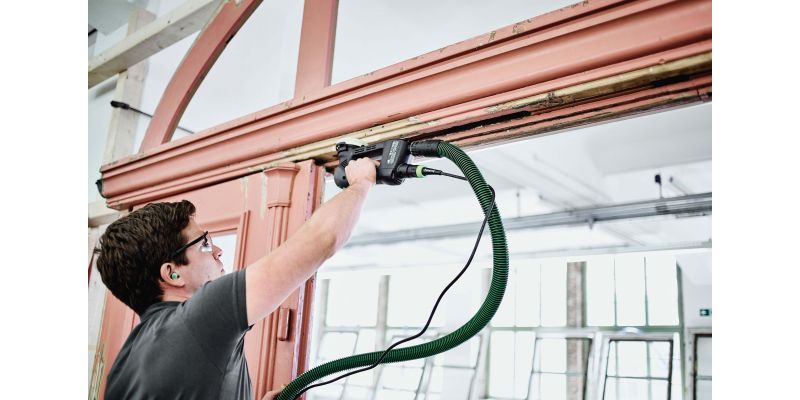 Sand safely against abutting edges without the risk of kickback with the Festool PROTECTOR – in three sizes for various angles and window frames.
